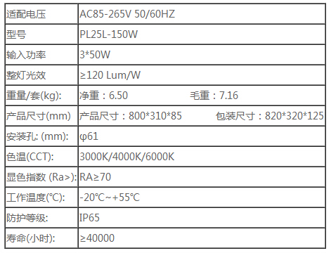 led路燈規格參數: